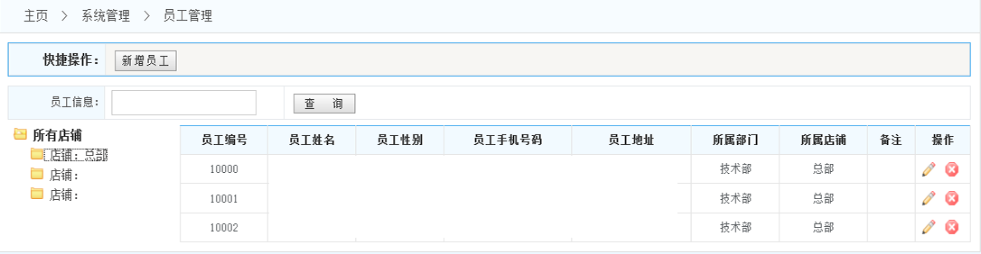 2.店鋪列表:雙擊店鋪名稱 員工列表中會(huì)顯示出此店鋪的所有員工