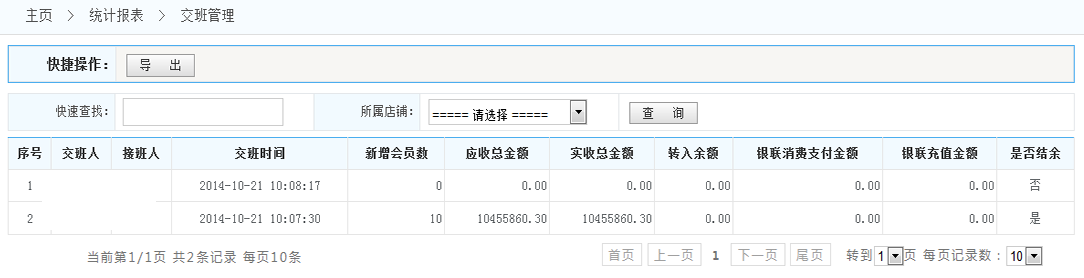 五通一卡通云會員管理系統交班管理