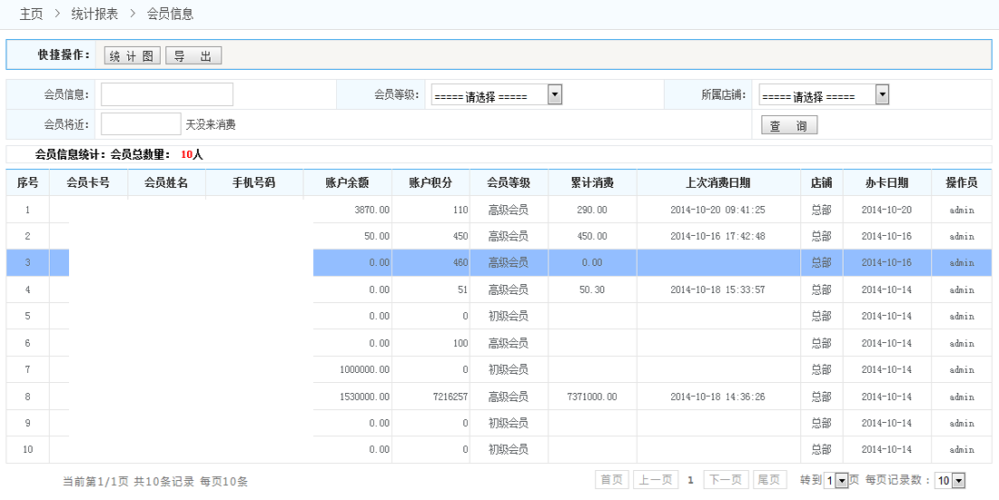 3.查詢:按照條件查詢出數據(例如 根據會員的店鋪會員的等級等)