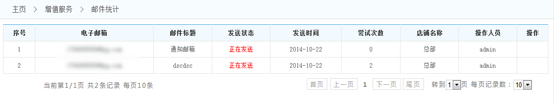 :顯示郵件發送列表.