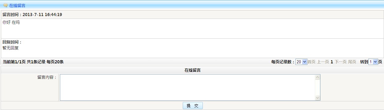 :會員自助在線給后臺管理員留言。