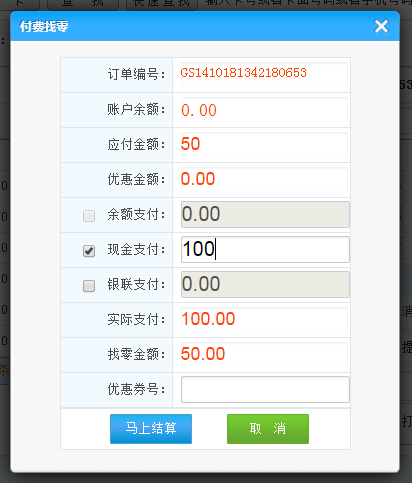 先會員刷卡,然后輸入商品的名稱或簡碼或者掃描槍快速定位查找商品;或者直接點擊商品選擇;選擇商品后點擊結算此訂單如圖顯示: