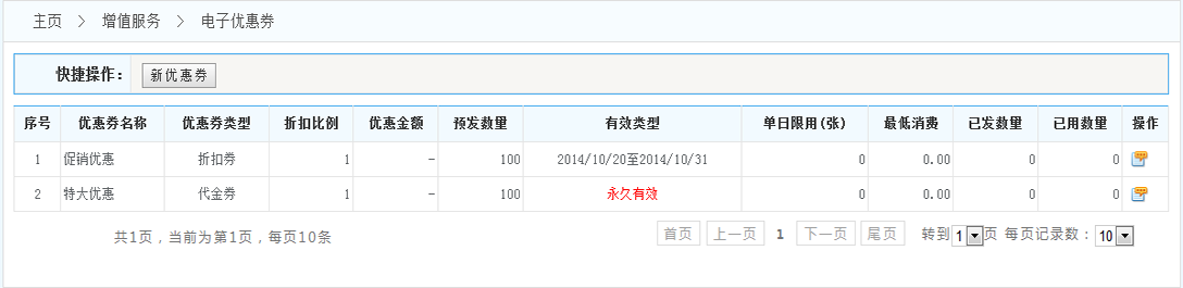 優惠金額/比例:如果優惠類型為代金券則為優惠金額;如果優惠類型為折扣券則為折扣比例